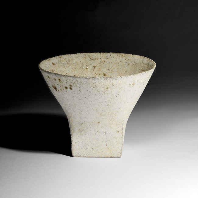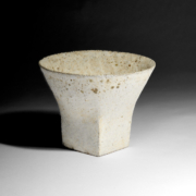 Hand built stoneware bowl with squared base rising into a round rim. Pitted and textured cream glaze. Impressed Philp seal to foot (PP24)